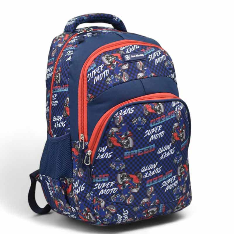 Ученическа раница за училище МОТОРИ непромокаема с много джобчета нов модел синя Код DN-3455-12