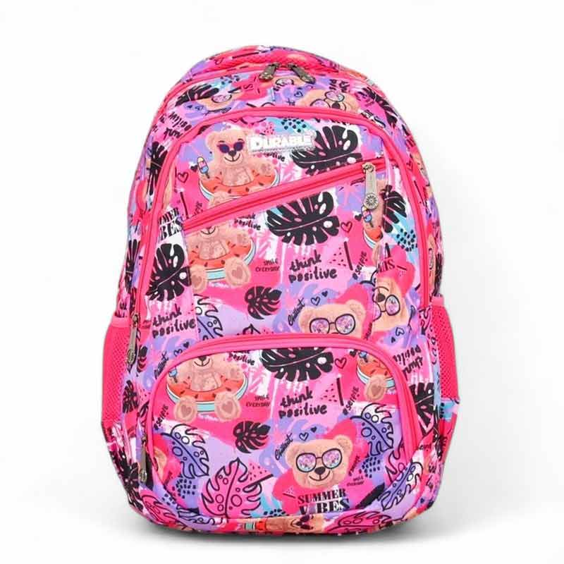 Ученическа раница от здрав непромокаем плат с едно основно отделение, три предни джоба с цип и две странични джобчета. Ученическата раница е с удебелен гръб и уплътнени регулиращи се презрамки, дръжка за носене в ръка.