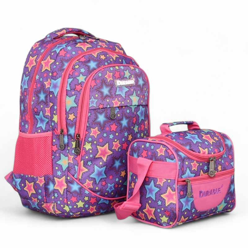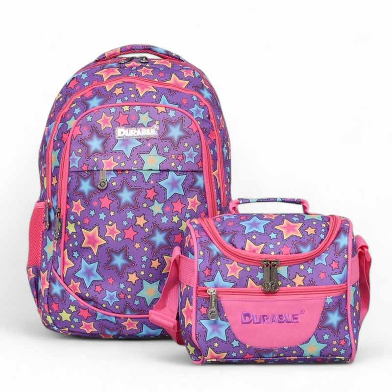 Ученическа раница и термо чанта за храна ЗВЕЗДИ практичен модел лилава